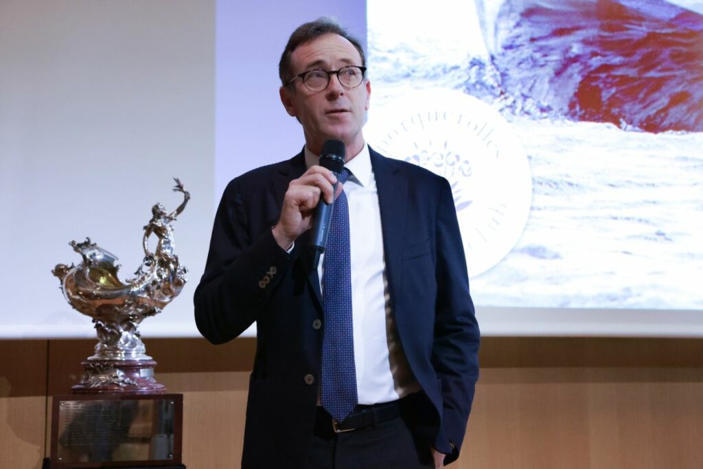“2025 – 12 MJI South Australia” est venu compléter la liste des vainqueurs depuis 1891 sur la base du Trophée, et Christophe Babule a reçu un dessin du bateau vainqueur par Marc PJ Berthier, peintre officiel de la Marine et du Yacht Club de France.