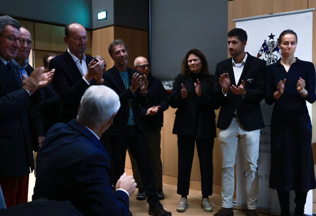 Les équipages des trois bateaux sur le podium : South Australia, Kiwi Magic (venu du Danemark) et French Kiss étaient réunis au musée national de la Marine à l’occasion des 3e journées nautiques du Yacht Club de France.